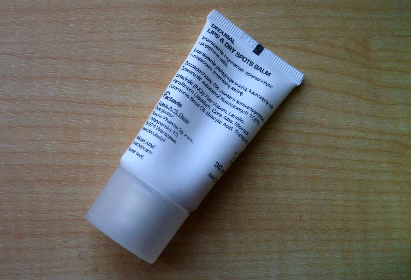 Skład: Petrolatum (wazelina), Lanolin (lanolina), Paraffinum Liquidum (parafina), Cera Alba (wosk pszczeli), Ricinus Communis Seed Oil (olej rycynowy), Salicylic Acid (kwas salicylowy), Tocopherol (witamina E)