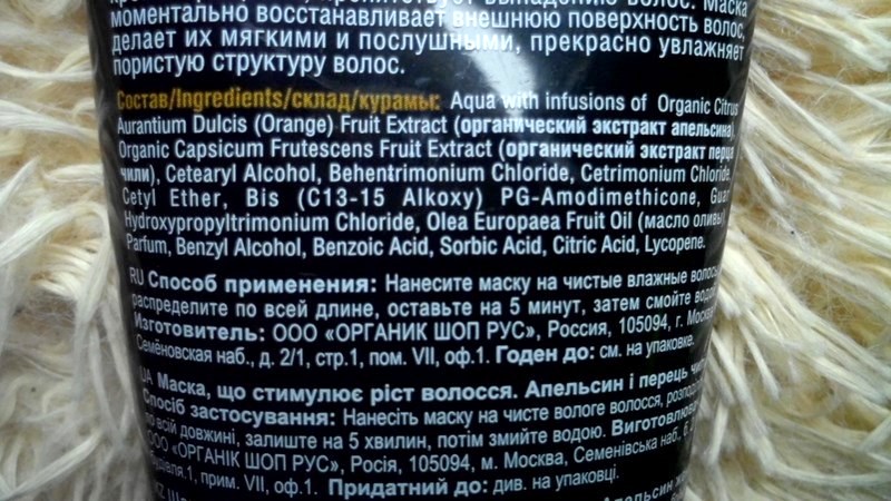 Krem w swoim składzie zawiera szereg naturalnych olejków i ekstraktów: olej sojowy, masło shea, oliwę z oliwek, sok z aloesu, olej migdałowy, olej arganowy i inne.