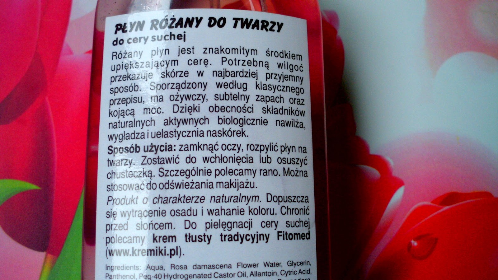 Płyn jest już trzecią i ostatnią wersją zapachową, którą testuję, dlatego już teraz mogę Wam napisać, że najlepsza pozostaje wersja oczarowa, później różana, a na końcu lawendowa. Płynów używam głównie po demakijażu i oczyszczeniu cery jak również rano na rozbudzenie. Latem idealnie spisują się do chłodzenia twarzy, przy czym nie ruszają makijażu z miejsca. Wydajność jest dużym plusem płynów, ponieważ ja 'męczę' jeszcze lawendową wersję od jakiegoś czasu. Co prawda nie mam cery suchej, ale mieszaną jednak nie zauważyłam, żeby robił mi krzywdę, a wręcz przeciwnie, skóra jest odświeżona i nawilżona. Jeżeli chodzi o zapach różany to jest bardzo delikatny i przyjemny dla nosa. Znalazłam też inne fajne zastosowanie dla płynu, rozpylam go na włosy przed nałożeniem maski, a efekt jest taki, że włosy są bardziej miękkie i ujarzmione.